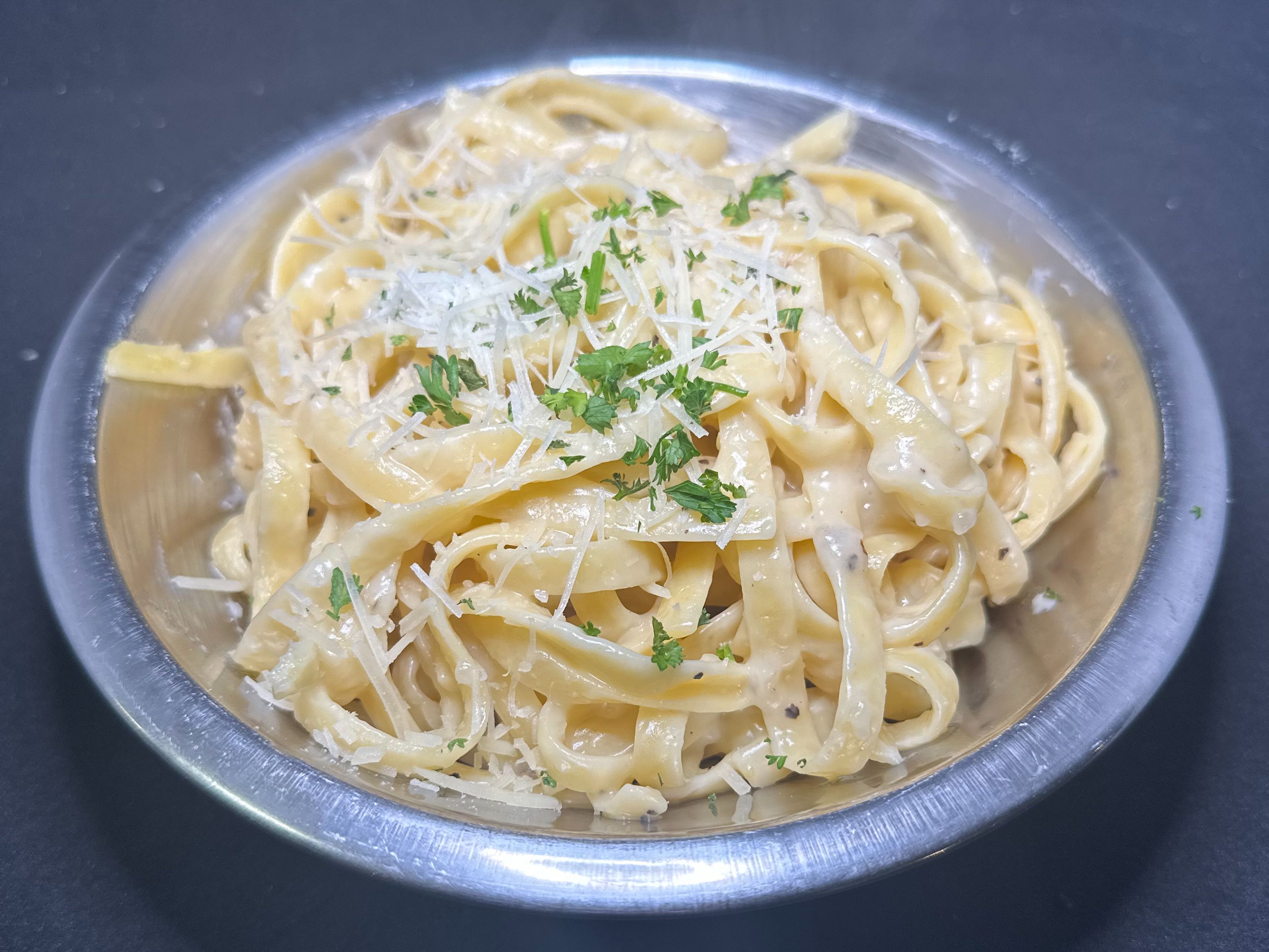 Our homemade parmesan cream sauce tossed with fettuccini noodles