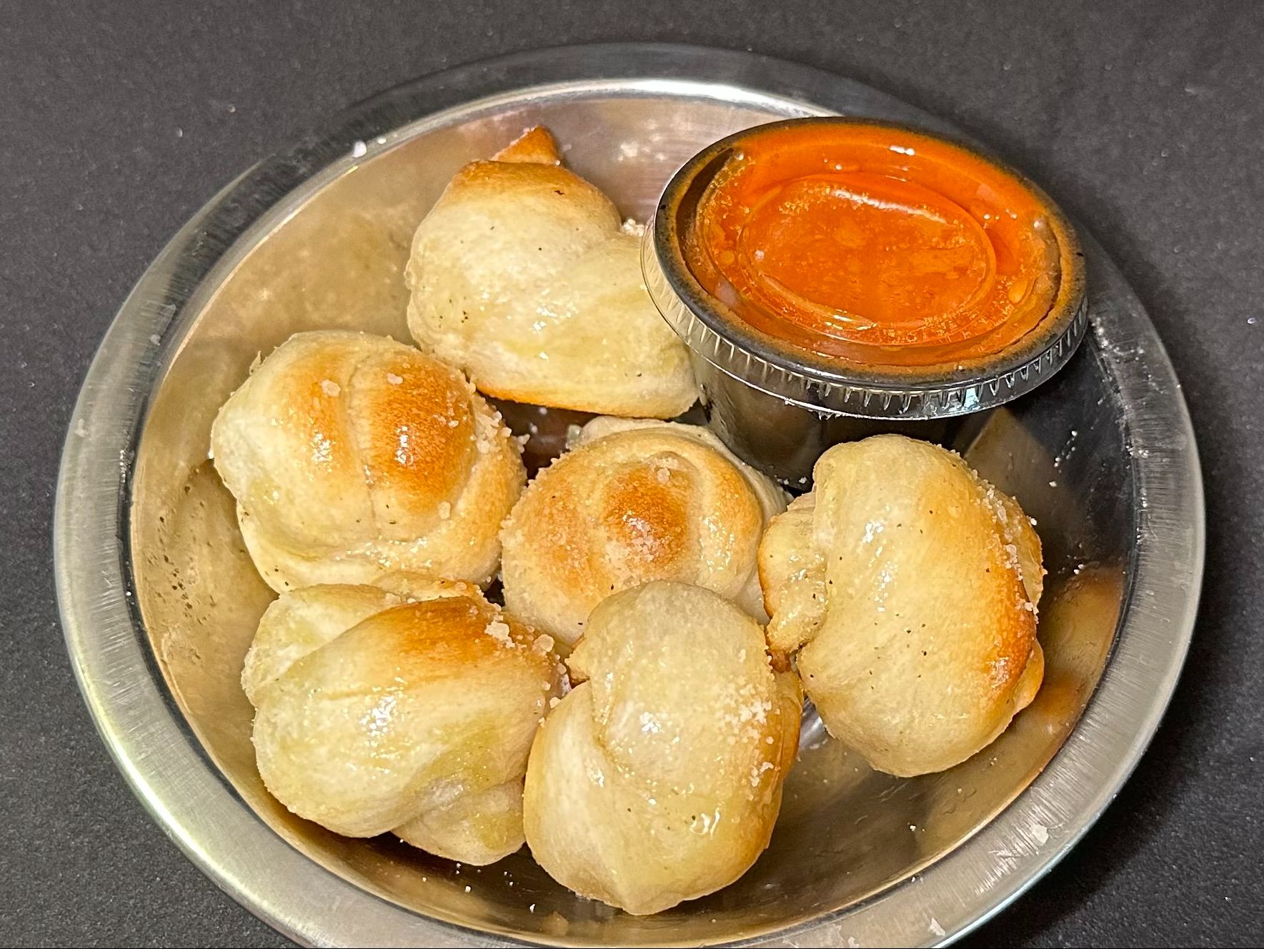 Made from scratch dough tied into knots, baked & then tossed with fresh garlic, olive oil, salt & pepper. Served with marinara