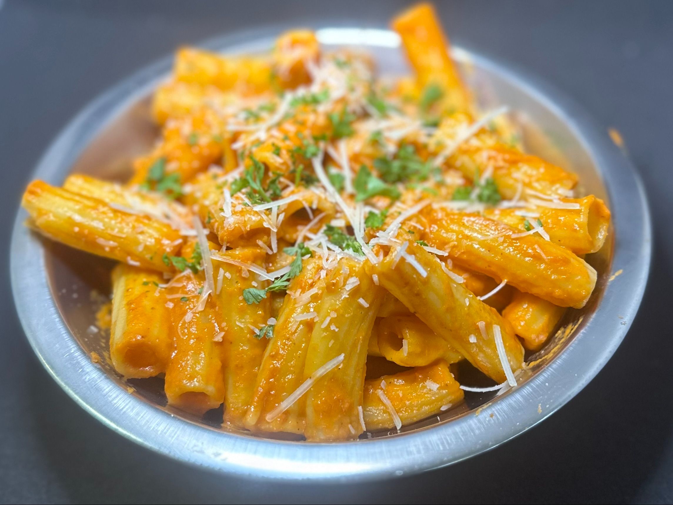 Rigatoni tossed in our homemade vodka sauce